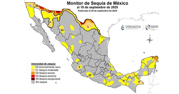 Una imagen inusual en los meses recientes presenta el monitor de sequía de la Conagua: Es el mapa de México cubierto casi en su totalidad por el color gris que representa ausencia de sequía. Salvos algunas pequeñas zonas donde la temporada de lluvias tuvo escaso impacto, la mayor parte del territorio mexicano aparece como lo queremos ver siempre, sin sequía.