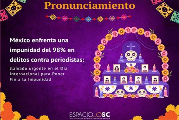 *Espacio de Organizaciones de la Sociedad Civil para la Protección de Personas Defensoras de Derechos Humanos y Periodistas (Espacio OSC).