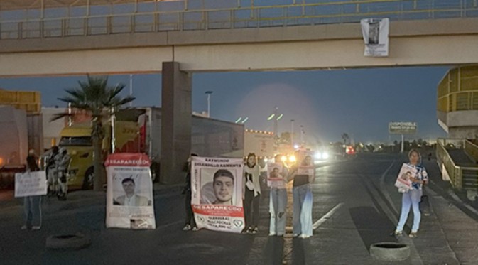 Familiares y amigos de Raymundo, el joven que fue privado ilegalmente de su libertad, se apostaron en la carretera Internacional a la altura de Walmart para bloquear el tránsito de automóviles.