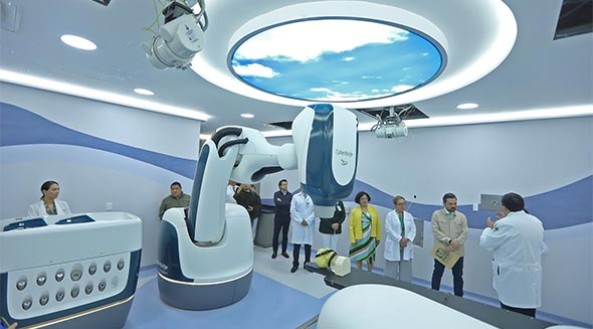 Resaltó que actualmente solo Brasil y Colombia cuentan con este equipamiento, por lo que México se convertirá en el tercer país en América Latina en incorporar la tecnología CyberKnife de última generación, que permitirá incrementar la realización 30 a 35 sesiones de radioterapia al día y que va a operar de lunes a viernes desde las 7 de la mañana hasta el turno nocturno.