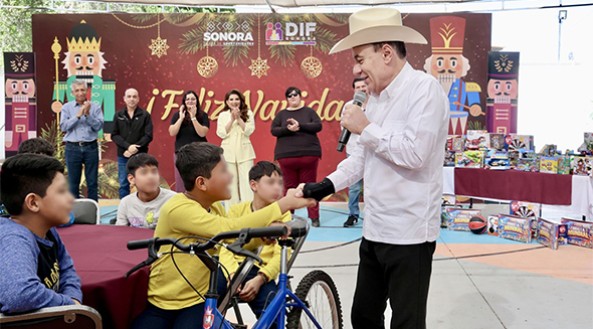 HERMOSILLO.- Como parte de su compromiso con la niñez sonorense para fomentar su sano desarrollo y brindarles oportunidades, el gobernador Alfonso Durazo Montaño celebró las posadas navideñas de las niñas y niños del Internado Coronel J. Cruz Gálvez y del Hogar temporal Jineseki, de Sistema DIF Sonora, donde entregó juguetes, bicicletas y regalos.