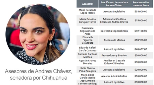 Chávez aseguró que “no dispone de más asesores ni de un presupuesto distinto al autorizado para cualquier otro integrante de la Cámara Alta”, aunque en una revisión en la PNT, se ubicó que por ejemplo la senadora Julieta Andrea Ramírez contó en el mismo lapso con seis asesores, y 30 iniciativas.