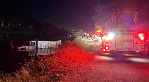 El reporte se recibió minutos antes de las 19:00 horas, alertando sobre la caída de un camión tipo torton, color blanco, al interior del canal, señalando que presuntamente había personas atrapadas.