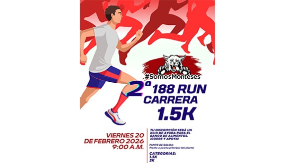 Este viernes 20 de fewbrero a partir de las 9:00 de la mañana se llevarán a cabo las carreras pedestres de 1.5 Km (un kilómetro y medio) y de 3 km que organiza el plantel CBTIS 188.