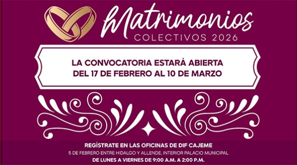 El trámite es completamente gratuito, las parejas interesadas deberán acudir al DIF Cajeme dentro del periodo establecido para recibir información detallada y realizar su registro.