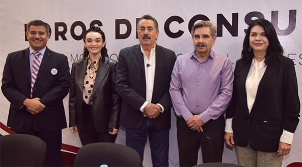 En el presídium participaron Álvaro Bracamontes, Coordinador de Consulta Popular; Bernardeth Ruíz Romero, Subsecretaria de Desarrollo Político; Jesús Héctor Hernández López, Rector del ITSON y la diputada Ernestina Castro Valenzuela, Presidenta de la Comisión de Protección Civil del Congreso Local.