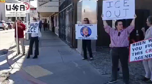 Cerca de un centenar de vecinos de Nogales, Arizona se manifestaron contra la presencia de Kristi Noem, y mostraron sus pancartas y consignas contra el Servicio de Inmigración y Control de Aduanas de Estados Unidos (U.S. Immigration and Customs Enforcement).