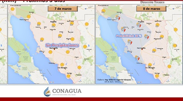 HERMOSILLO.– El Gobierno de Sonora, a través de la Coordinación Estatal de Protección Civil (CEPC), informa que se espera un fin de semana en donde se sigan presentando temperaturas frías y frescas por las mañanas, así como tardes ligeramente calurosas, con posibilidades de lluvias a partir del domingo.