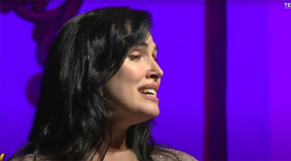 ¡Qué mujer! Su boca de labios carnosos es un sueño. Y su cuerpo escultural, dentro de un vestido que revela los contornos de su físico obliga al espectador a estar pendiente de sus movimientos. Si no hubiera subido a cantar sino a dar giros y pasos de un lado a otro, como una modelo, el respetable se hubiera ido igualmente satisfecho.