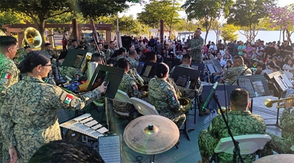 Para cerrar la tarde con broche de oro la magnífica y aplaudida presentación de la Banda de Música de la II Región Militar quién deleitó a la concurrencia con un repertorio musical vasto en expresiones de una banda mini sinfónica con repertorio no solo marcial, clásico, sino también popular con danzones, popurrí de Queen, cumbias que motivaron aplausos y las peticiones de más números.