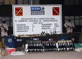 NAVOJOA.- Un total de 75 armas largas, una pistola, 11 vehículos, un detenido, dos granadas, vestimenta de corporaciones policiacas, chalecos antibala y otros objetos decomisó el Ejército Mexicano en dos viviendas de Navojoa.