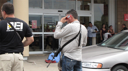 En ese momento, alrededor de las 14:30 horas, llegó un sujeto desconocido sólo descrito como alto y delgado, de aproximadamente 22 años, quien disparó en varias ocasiones una pistola contra Amavizca.