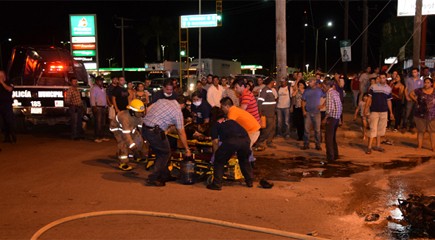 NAVOJOA.- La noche del martes 16 de junio se registró un accidente vial en el Boulevard Luis Salido Quiroz que finalmente resultó fatal al fallecer Roberto Corral Zayas, motociclista que sufrió quemaduras de segundo y tercer grado en el 60 por ciento de su cuerpo.