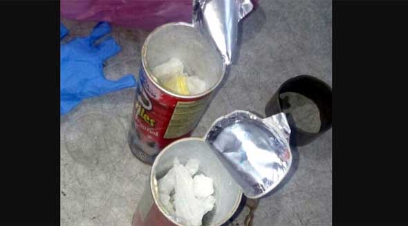 OPODEPE.- A través de la coordinación que mantienen elementos de la Policía Estatal de Seguridad Pública (PESP) y Secretaría de la Defensa Nacional (SEDENA) se logró asegurar a personas que transportaban “heroína” y “cristal” que escondían en lata de papas fritas y un extinguidor.