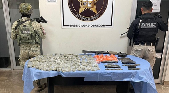 La Fiscalía General de Justicia del Estado de Sonora (FGJES), en coordinación con la Secretaría de la Defensa Nacional (DEFENSA) y la Agencia Ministerial de Investigación Criminal (AMIC), llevó a cabo un operativo conjunto, en el que se logró asegurar un arma, munición equipo táctico y narcóticos.