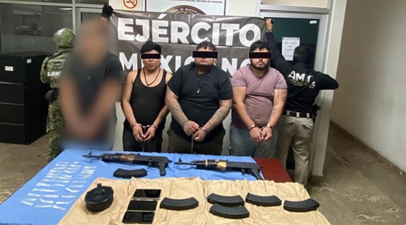 Como resultado de esto se aseguraron dos armas largas tipo fusil calibre 7.62 x 39 milímetros, seis cargadores plásticos abastecidos con cartuchos del mismo calibre y un cargador de disco también con cartuchos calibre 7.62 x 39 milímetros.