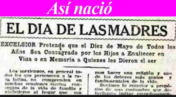 “Excélsior lanza la idea de que se consagre la fecha mencionada -diez de mayo- de una manera especial apra rendir un homenaje de afecto y respeto a la madre; y pide la colaboración de sus colegas y del público para realizar ese levantado propósito”. El primero de mayo, este diario hizo incluso recomendaciones de regalos para las mamás.