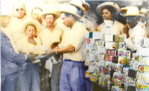 Aquí aparece Agustín Fornés Conant en el momento en que entrega la paga o raya a uno de los miembros del ejido Quechehueca.